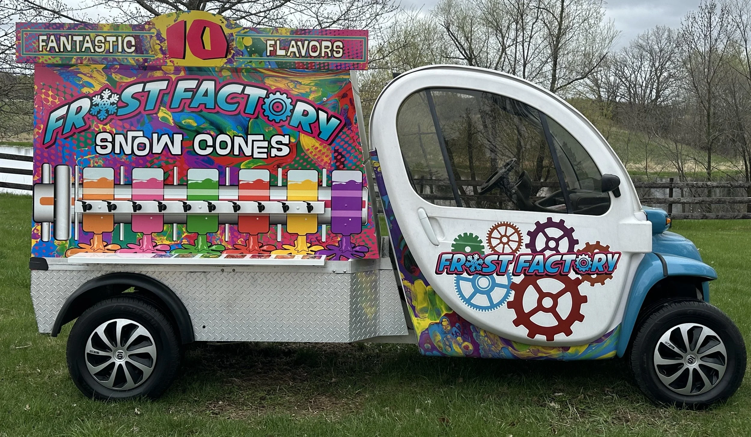 You’ll have the coolest gathering in town with the Frost Factory! We serve the ice and you flavor-it-up with 10 refreshing flavors! Choose one or choose them all — we won’t judge!
